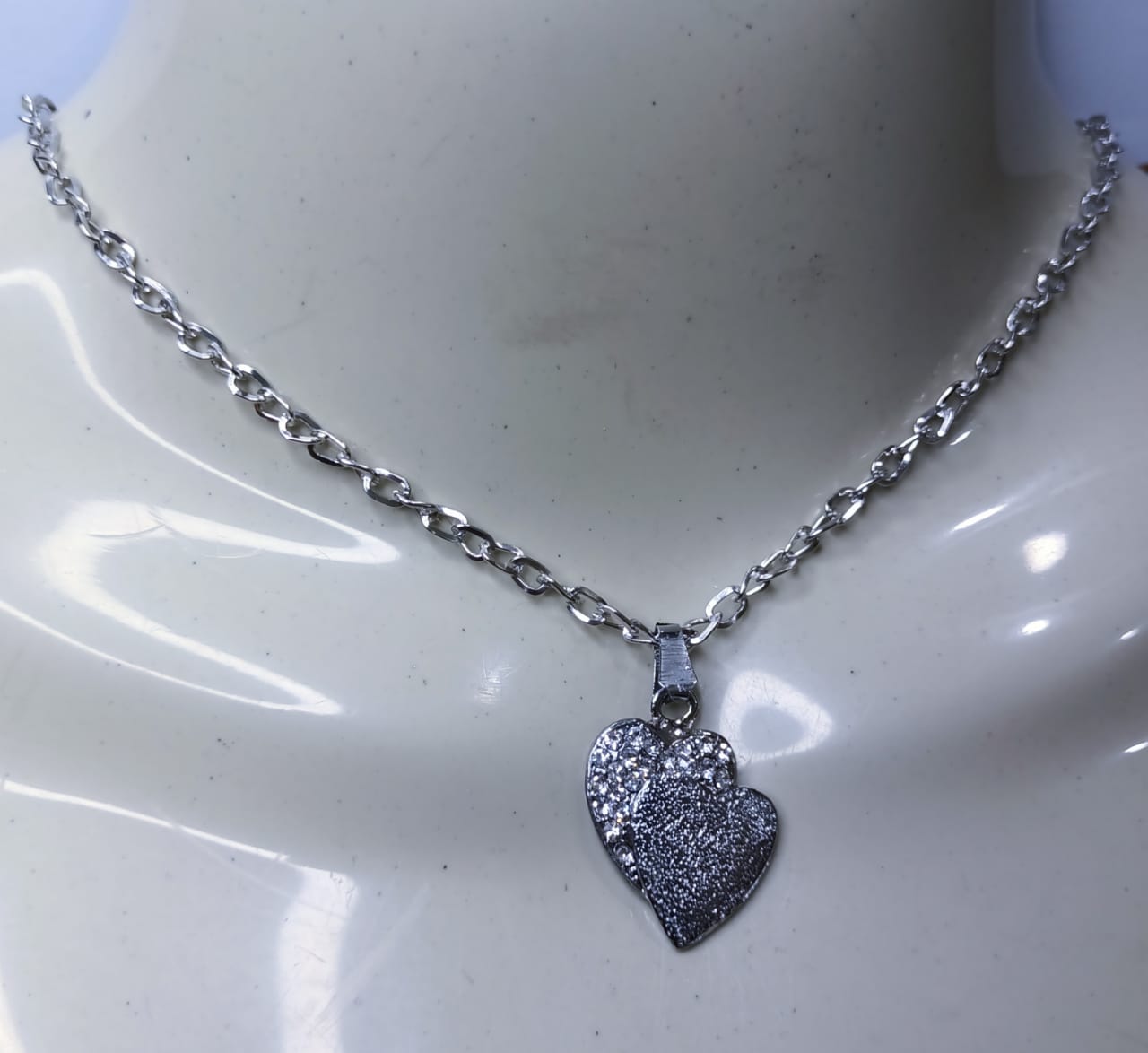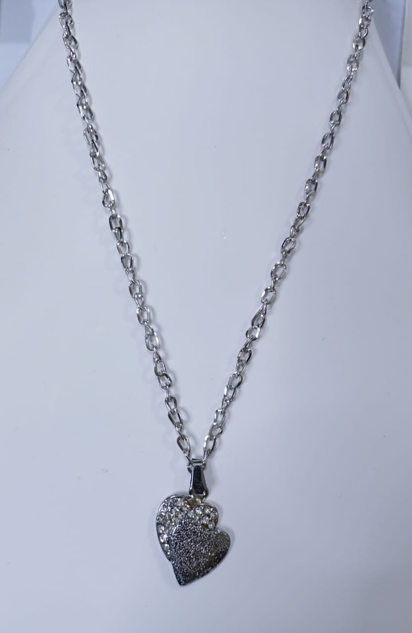 • Alloy silver chain with double heart locket necklace.