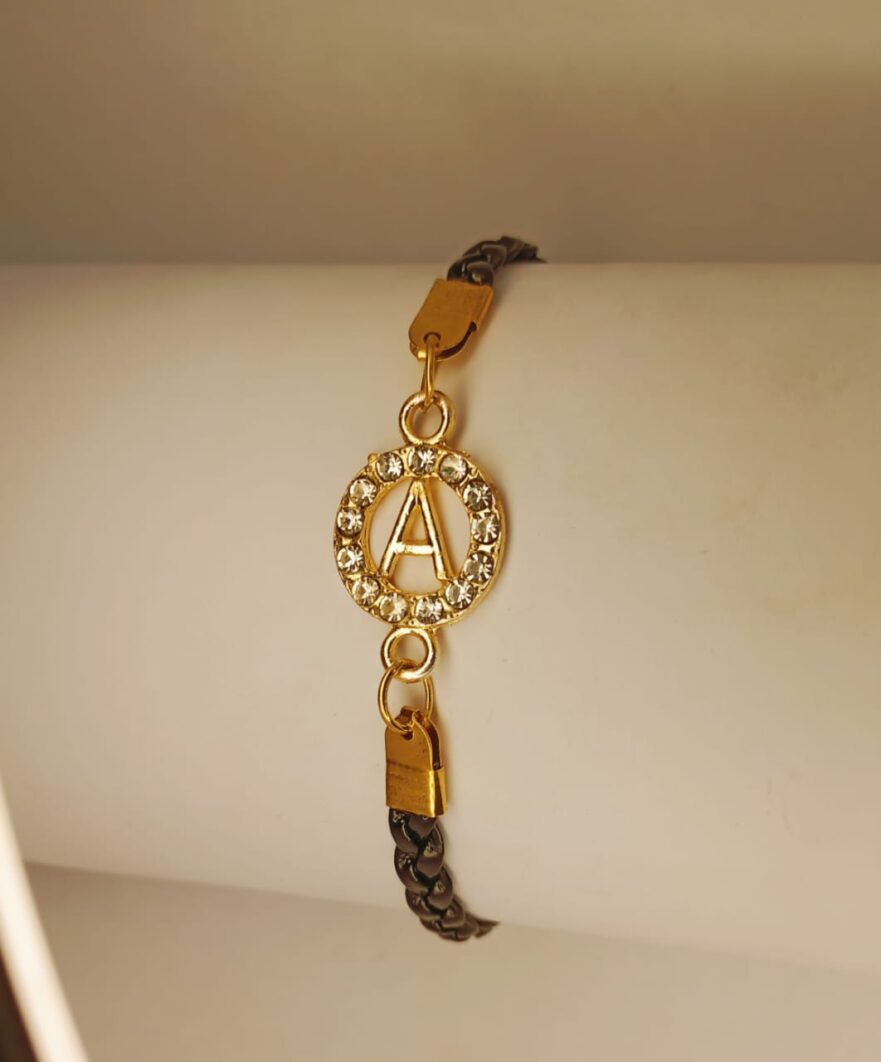• Classical Golden A to Z Alphabet Block Leather Bracelet/Watch