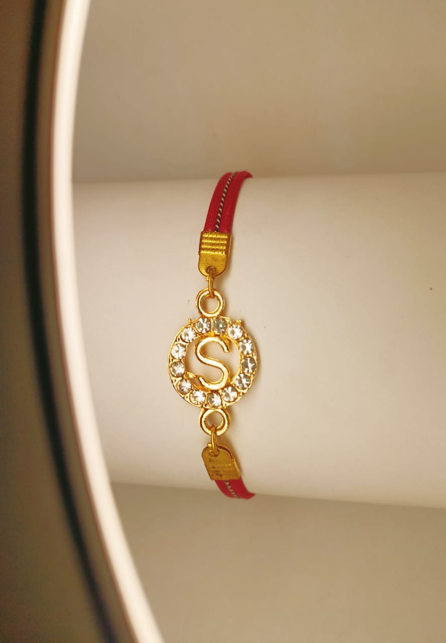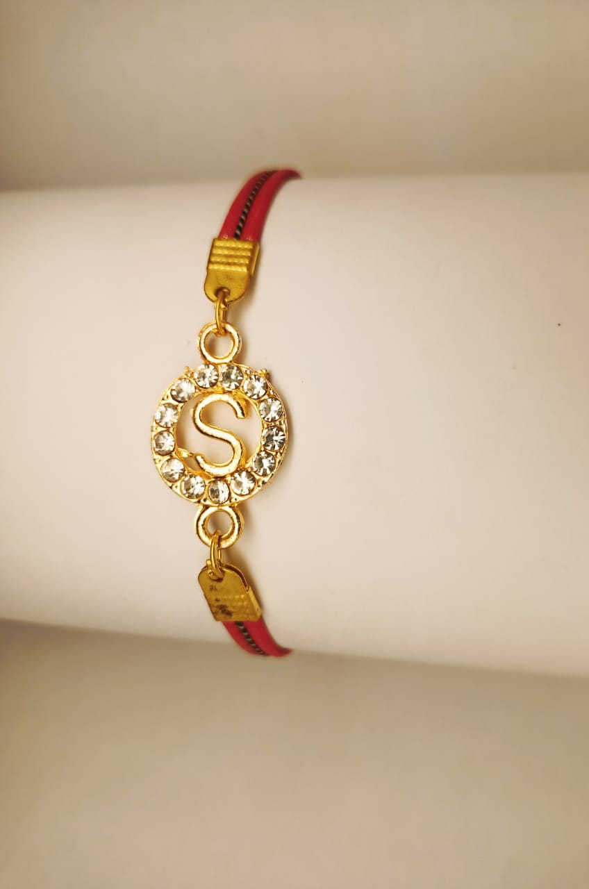 Classy Golden Alphabet with Leather Strip Bracelet For Girls / Women