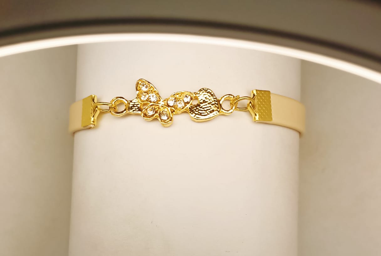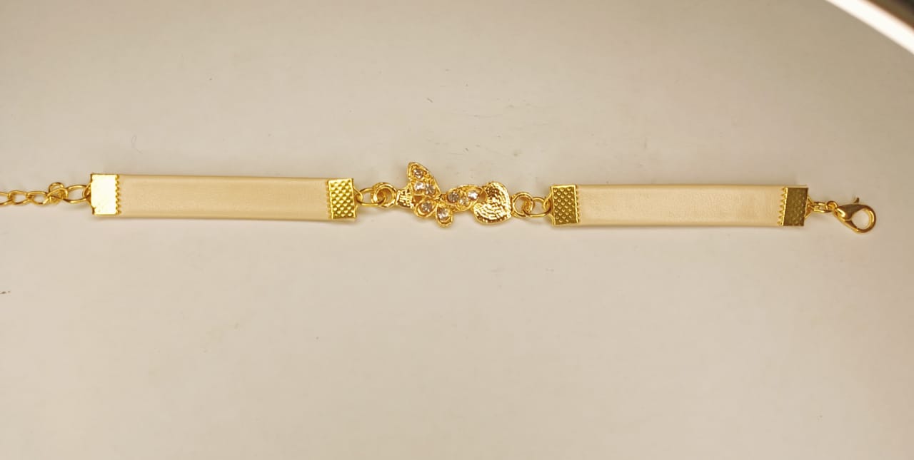 Be the first to review “Classy Zircon Golden Butterfly off White Leather Bracelet / Watch For Girls, Women”