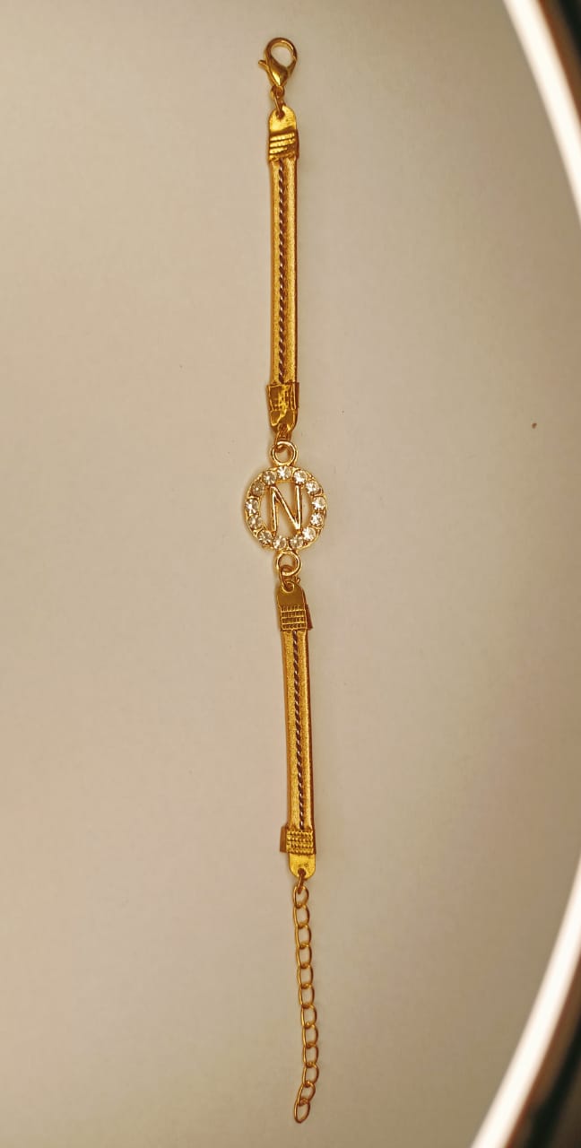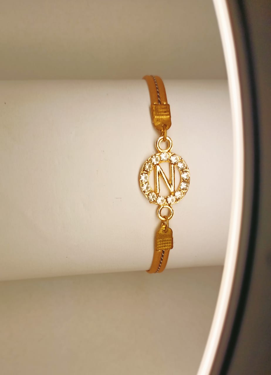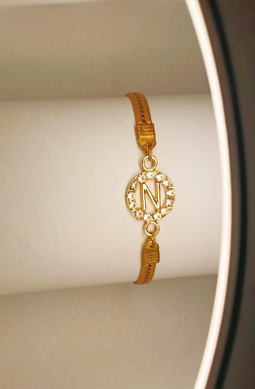 Classy Zircon N Alphabet Golden Leather Bracelet / Watch For Girls / Women
