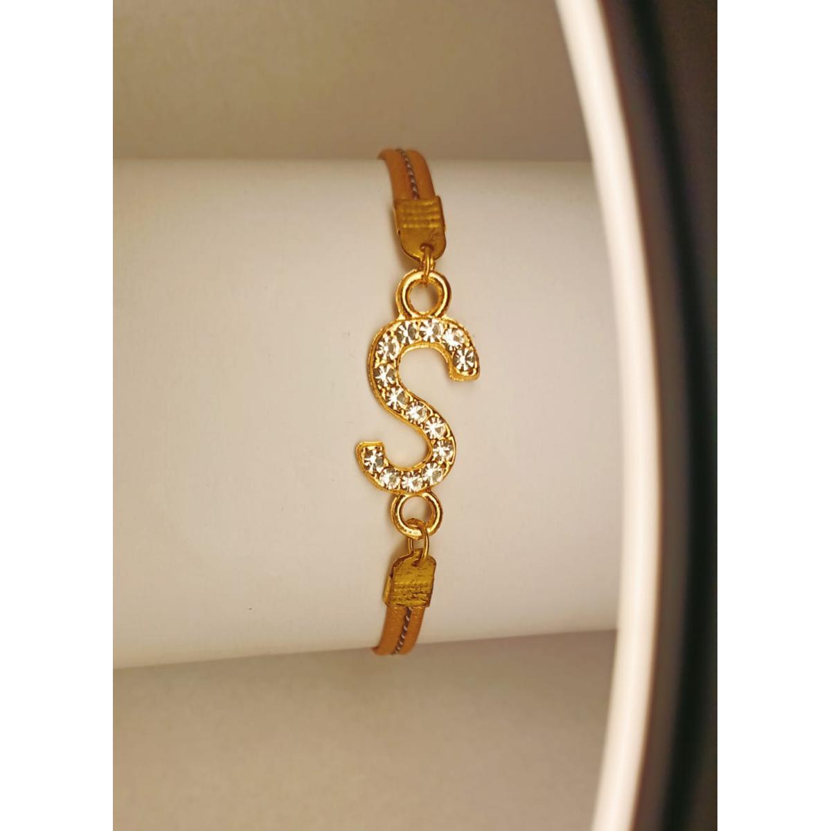 Classy Zircon S Alphabet Golden Leather Bracelet / Watch For Girls, Women