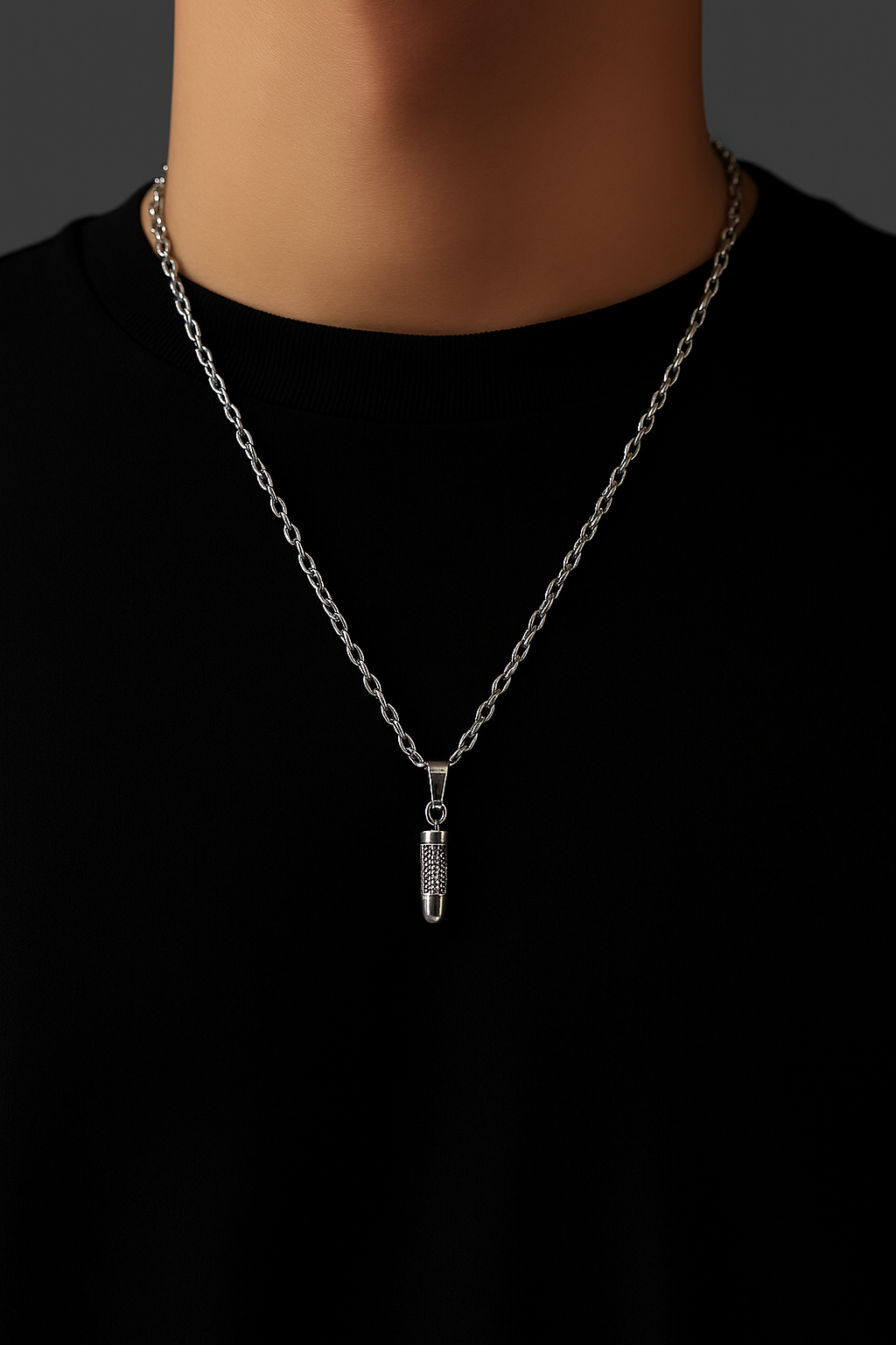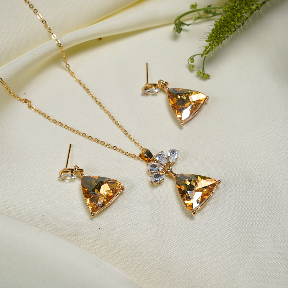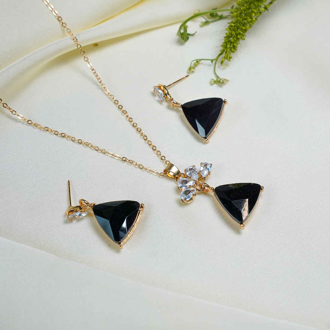The sleek pendant design and matching stud earrings create a perfect balance of elegance and sophistication.