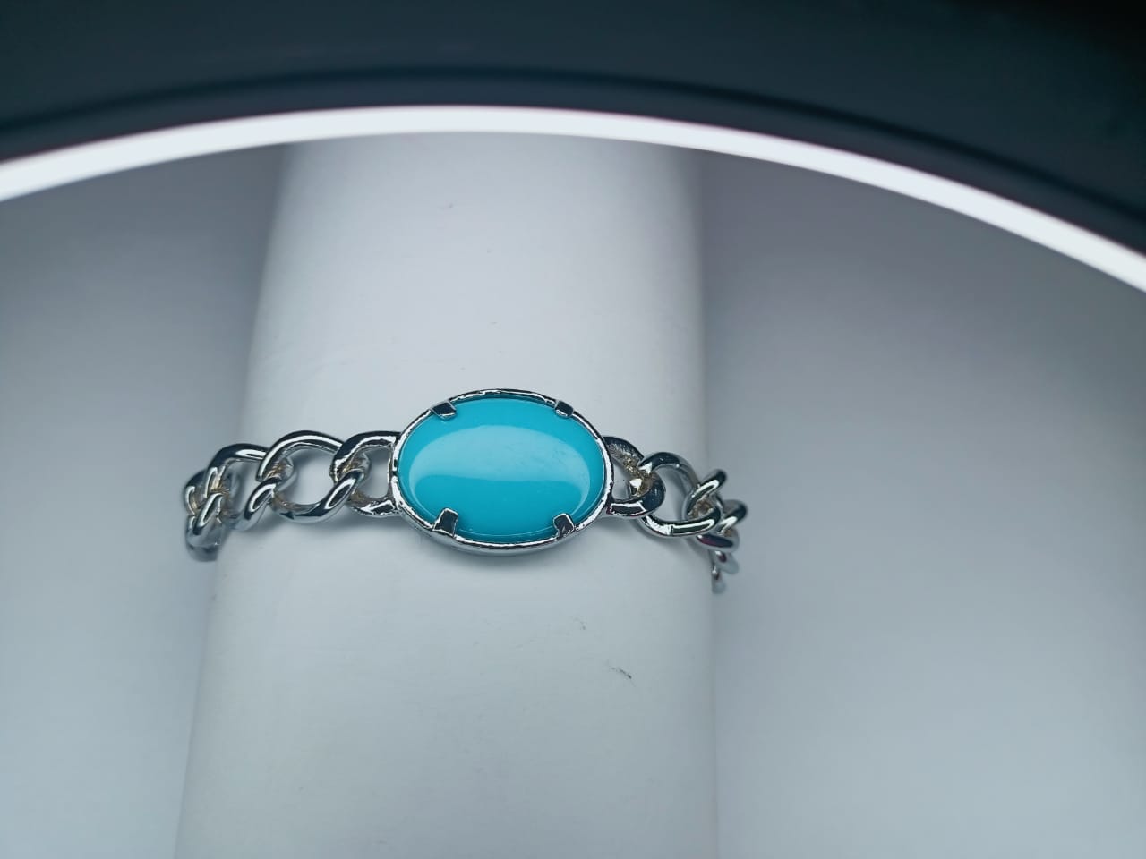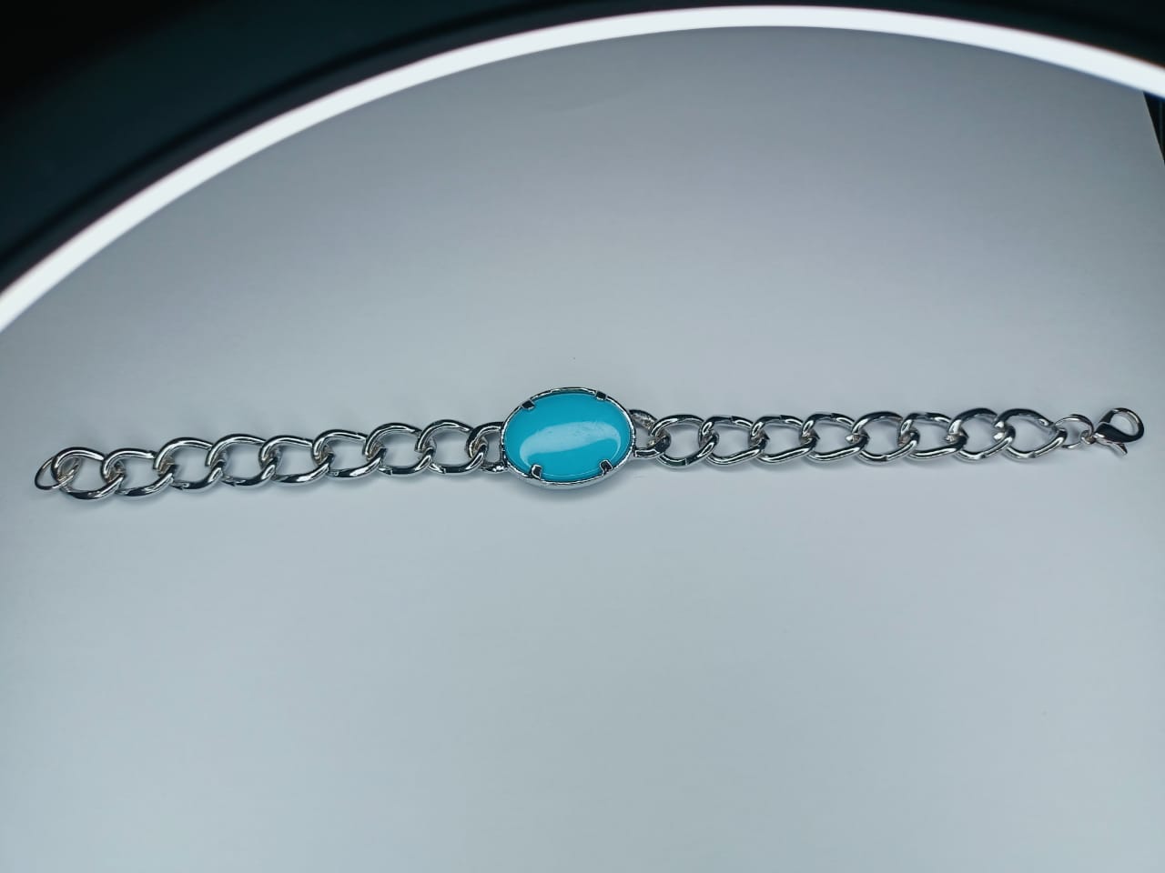 New Feroza Stone & Silver Chain Bracelet For (Men & Boys)