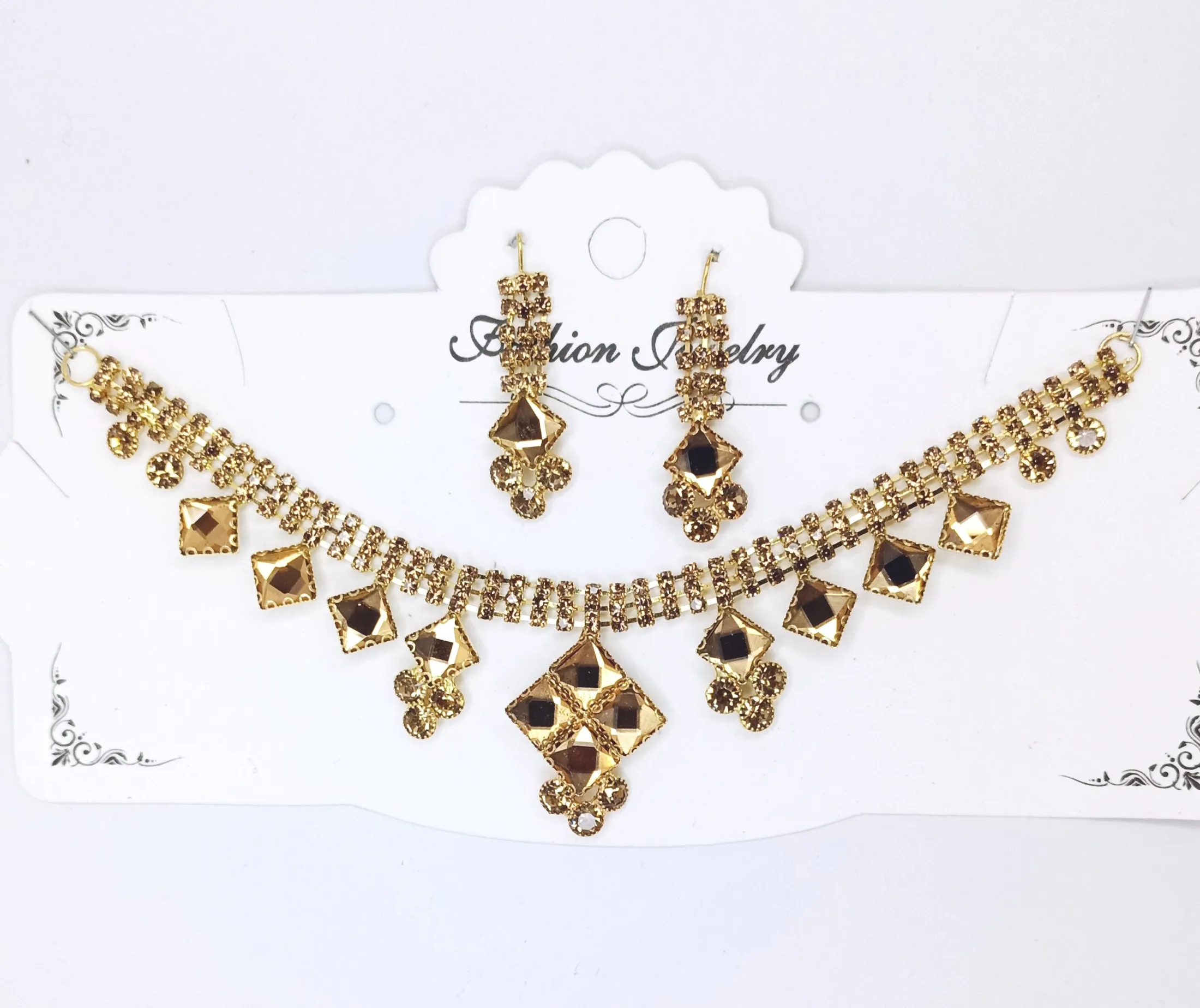 New Golden Stylish Choker Zircon Necklace with Earrings Set – Fancy Jewelry for Ladies