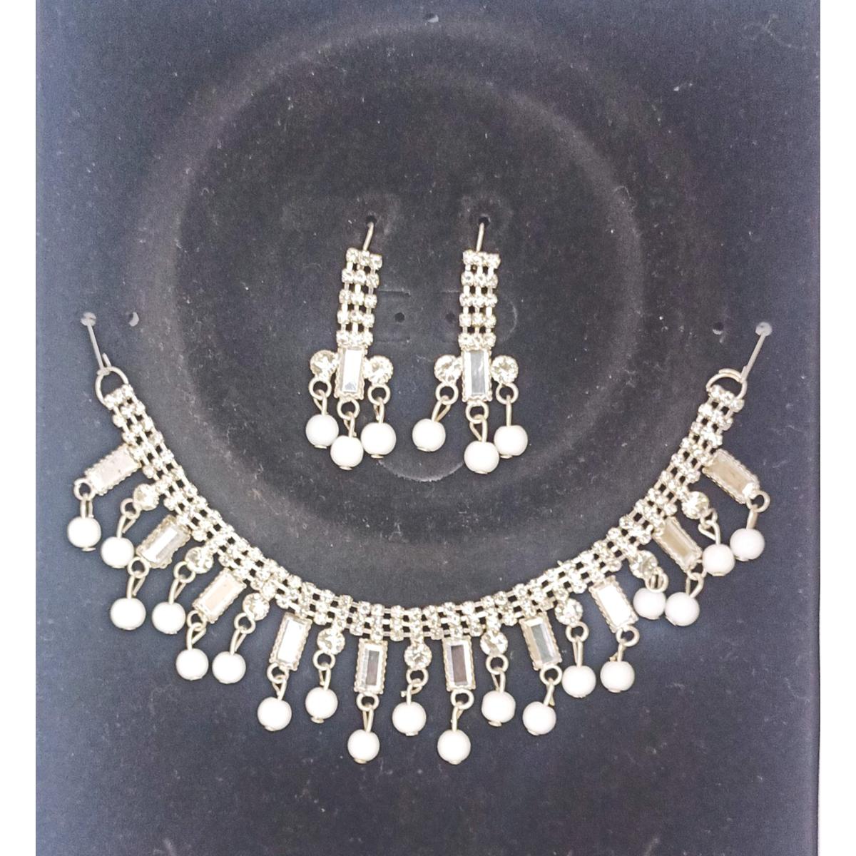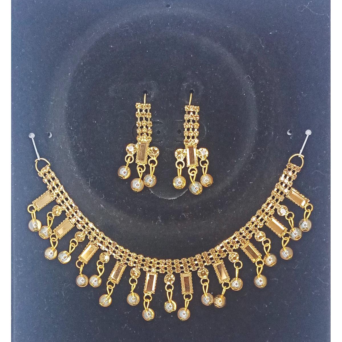 Golden Stylish Pearl Choker Zircon Necklace with Earrings Set-Fancy Jewelry for Ladies