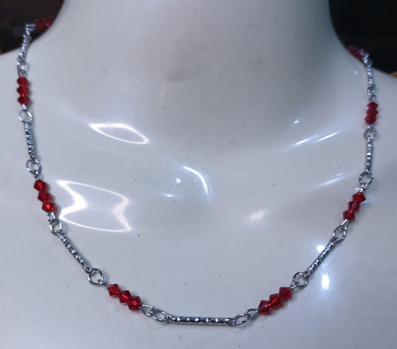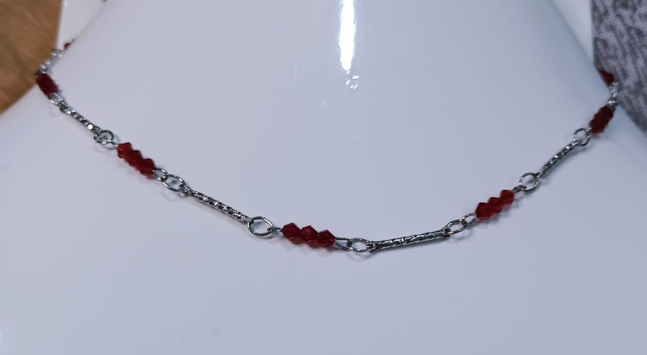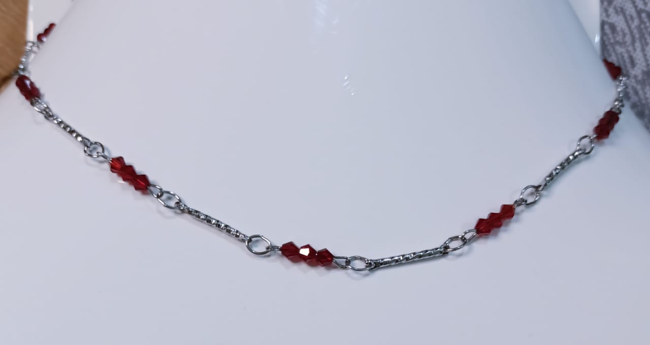 • Silver stainless chain with red beads necklace for women.