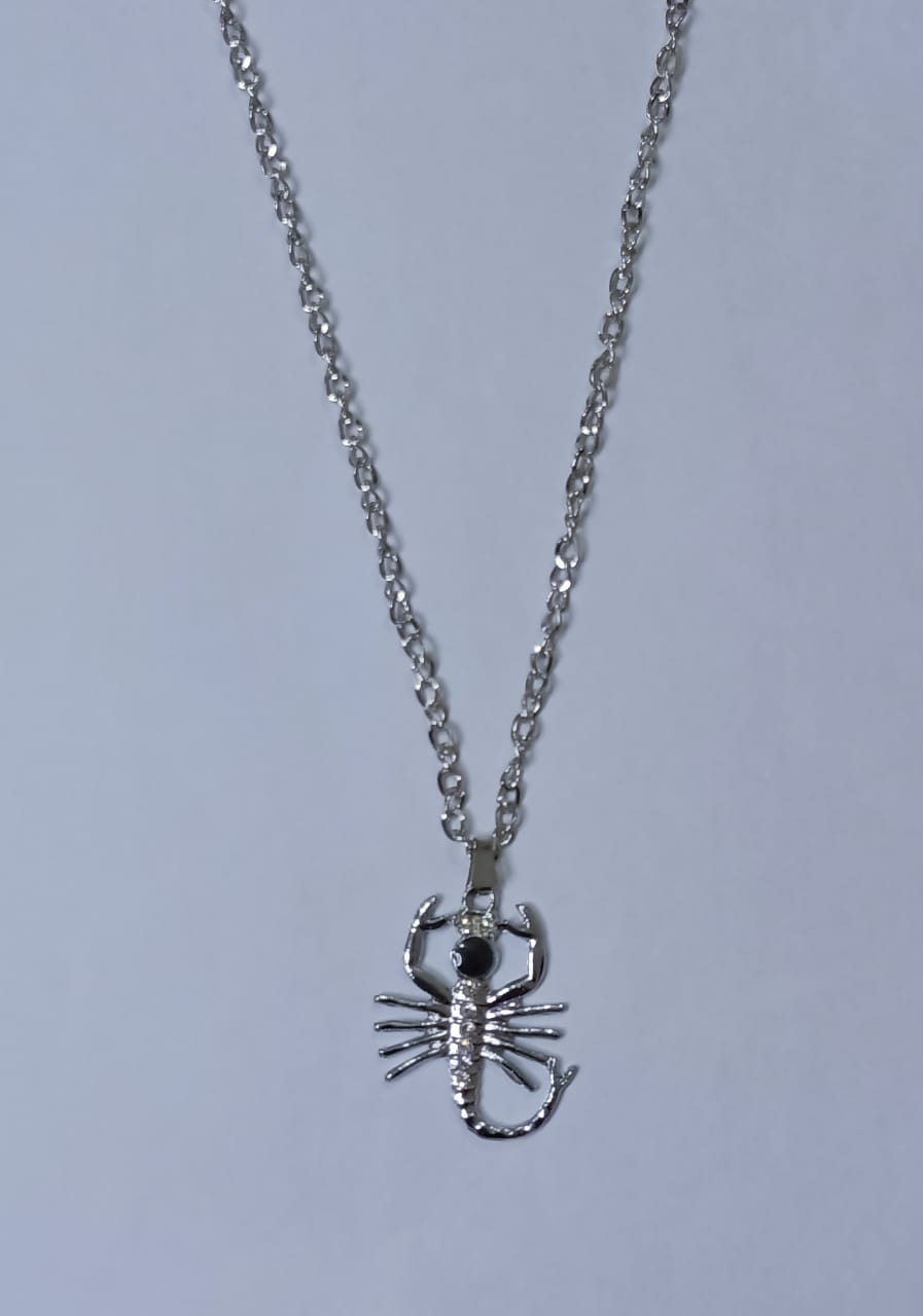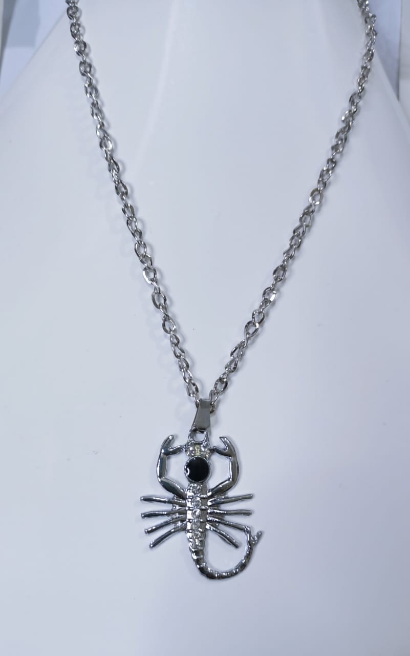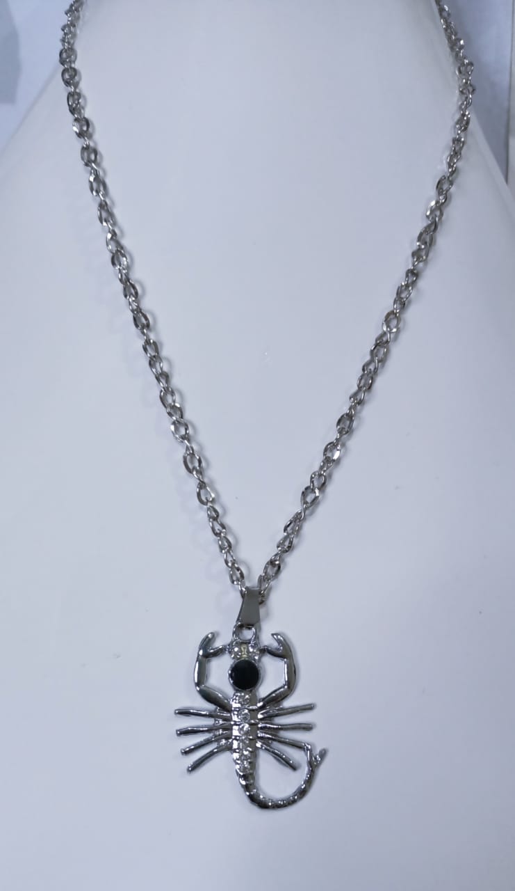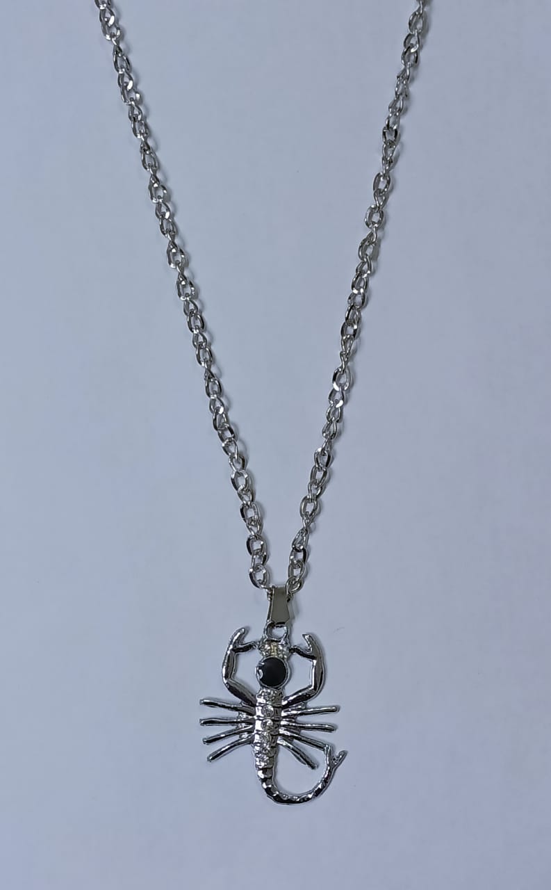 • Silver chain necklace with animal locket.