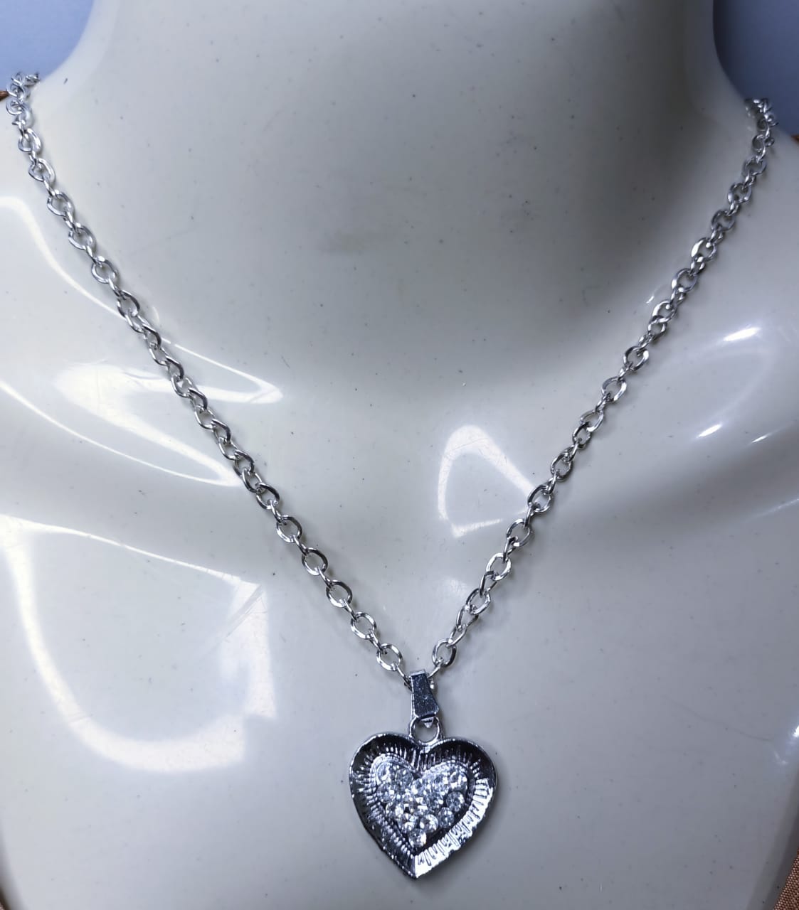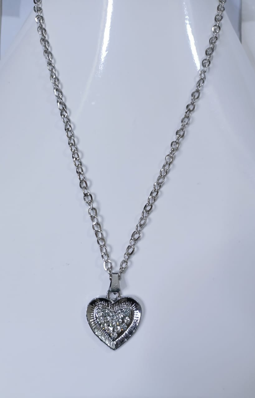 • Silver chain necklace with heart zircon locket.