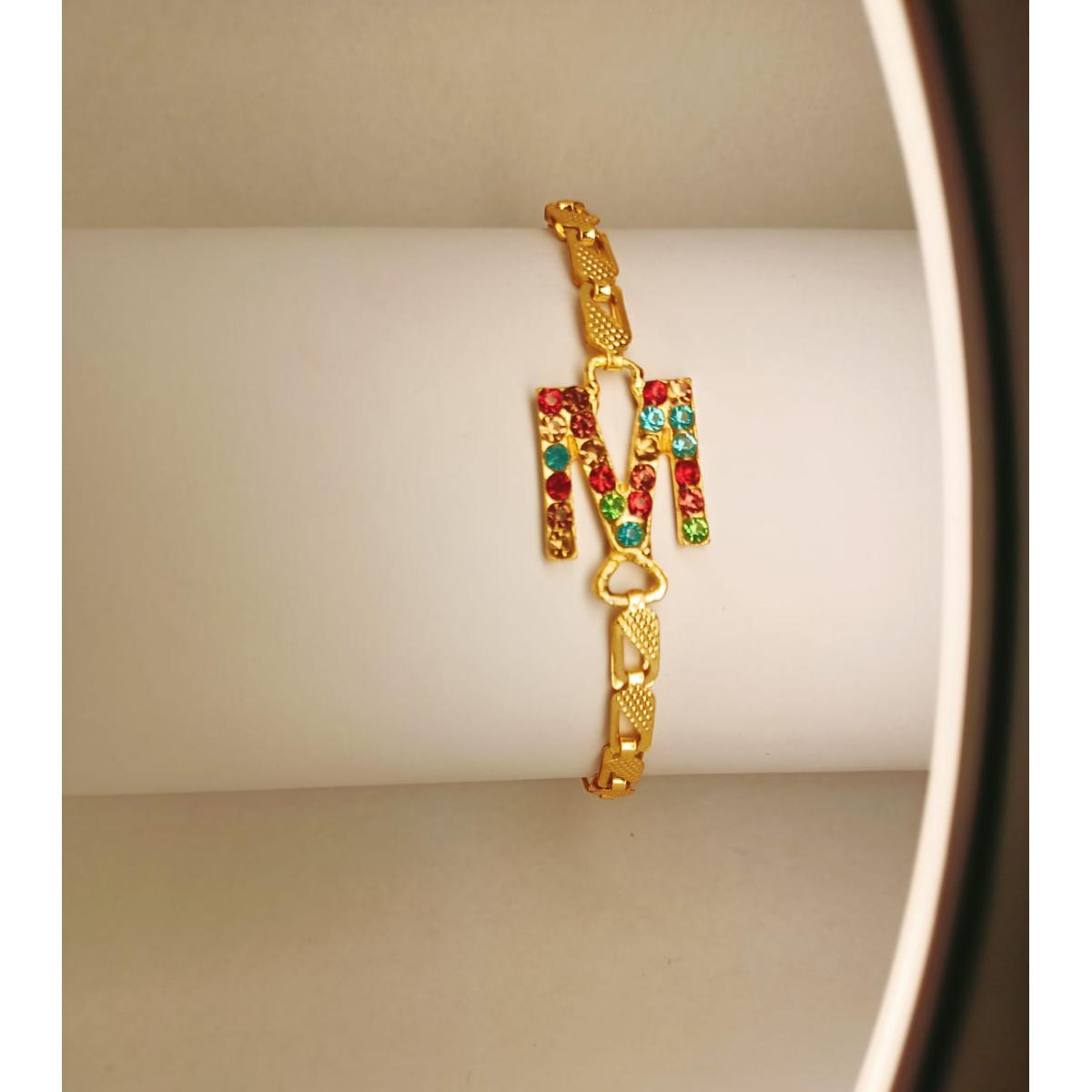 Stylish Alloy Golden M Zircon Bracelet Watch For Girls, Women